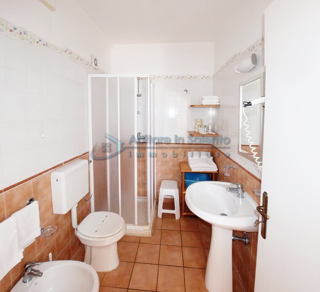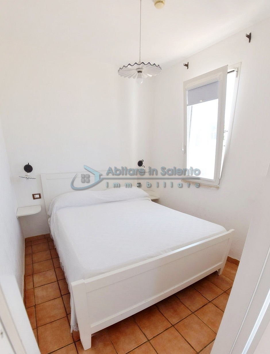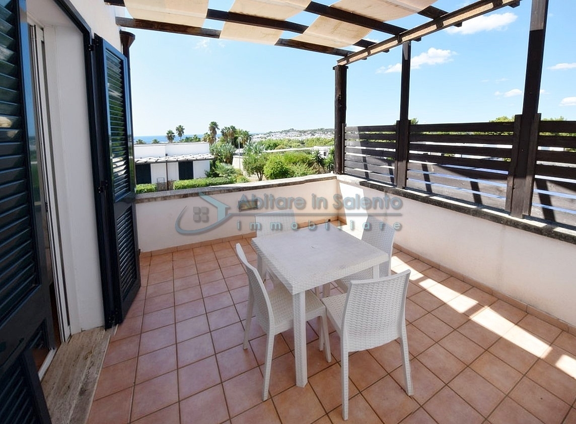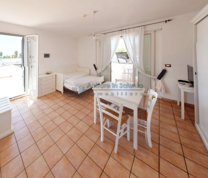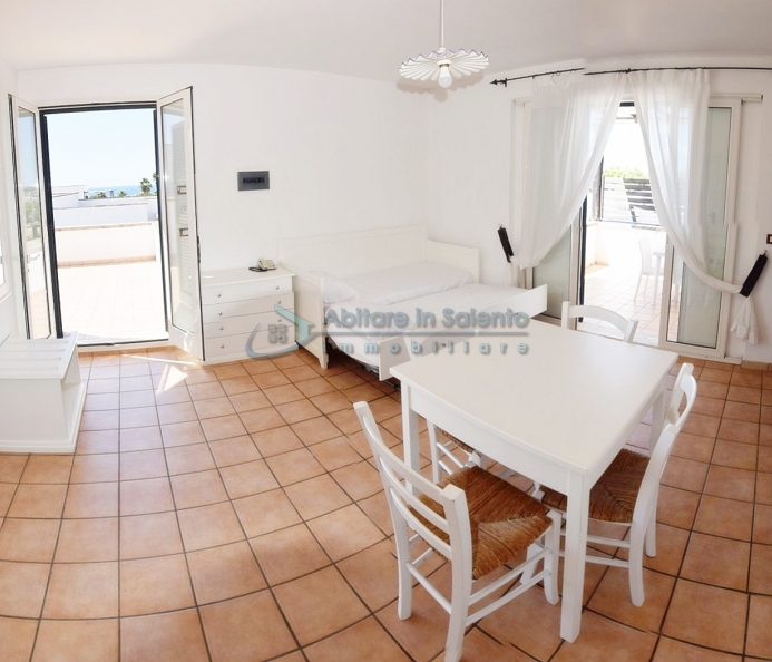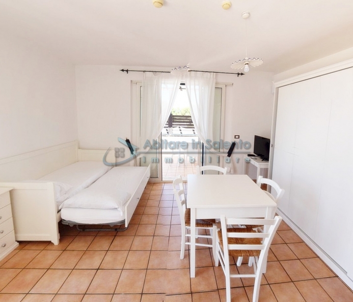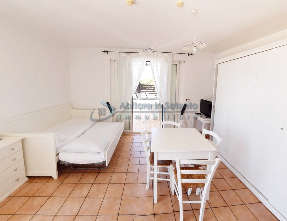 MARINA DI LEUCA – In the enchanting setting of Santa Maria di Leuca, the pearl of Salento, within a 4-star hotel complex featuring a saltwater swimming pool, wellness center, and restaurants, strategically located to offer breathtaking sea views just a few hundred meters from the coast, we offer for sale a cozy, well-furnished one-bedroom apartment. The property is equipped with all modern comforts (air conditioning, mosquito screens, etc.), features recent furnishings, and is held under a timeshare arrangement, with a surface area of approximately 50 square meters. The unit is located on the first floor with an independent entrance via an external staircase and comprises a spacious front terrace with sea view, a bright living room with kitchenette, sofa bed, TV, and dining table, one bedroom, a bathroom, and access to a charming side terrace also with sea view, featuring a covered patio with awnings, a small table, and rattan armchairs. The price refers to the 27th week of the calendar year (first week of July). An excellent investment.